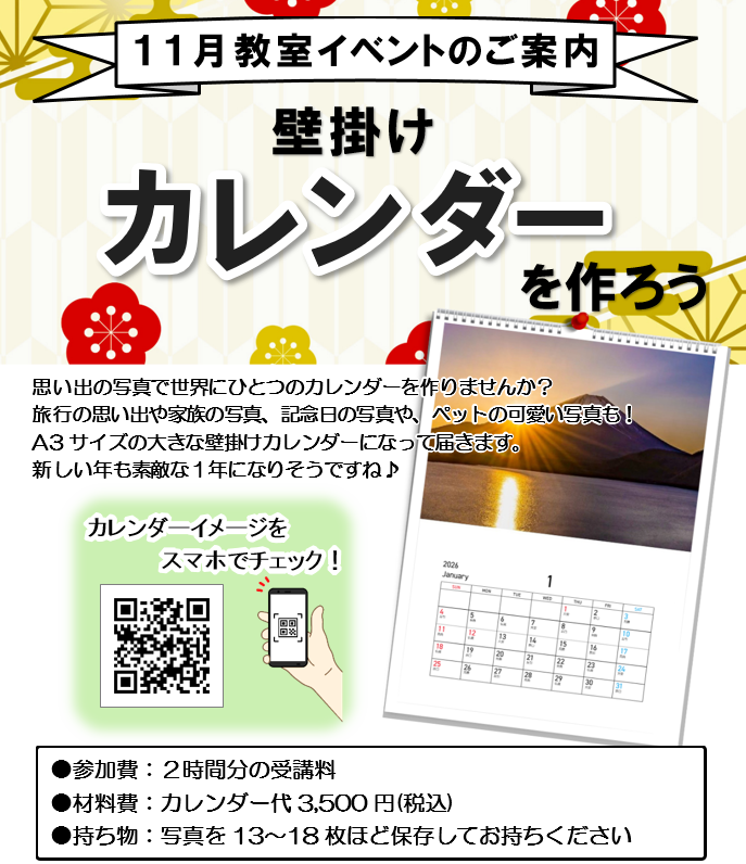 11月のイベントは『オリジナル壁掛けカレンダーを作ろう』です。
