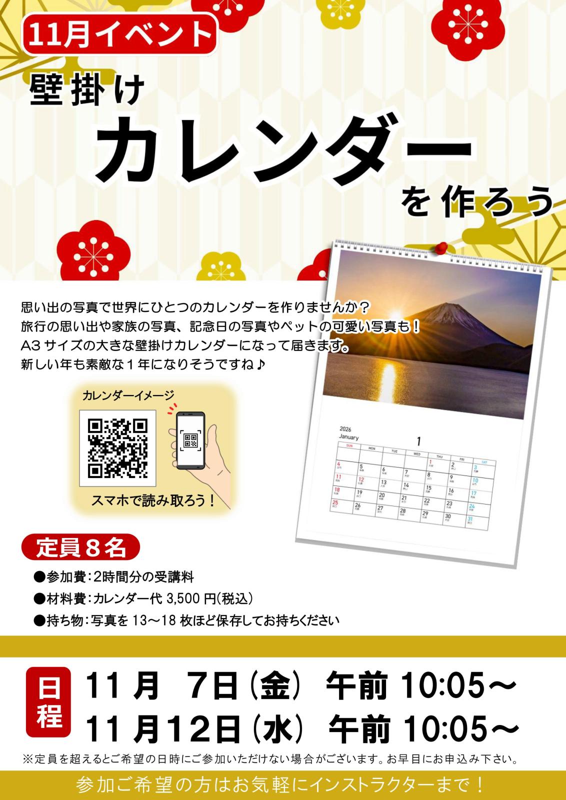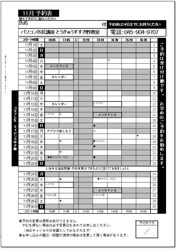 そんな中、教室では11月分のご予約受付がスタートしています。
