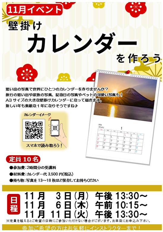 今日は11月予約表とイベントのご案内です。