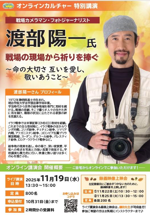 さて、先日ご案内した11月オンラインカルチャー「秋の特別講演」の参加予約がスタートしました!