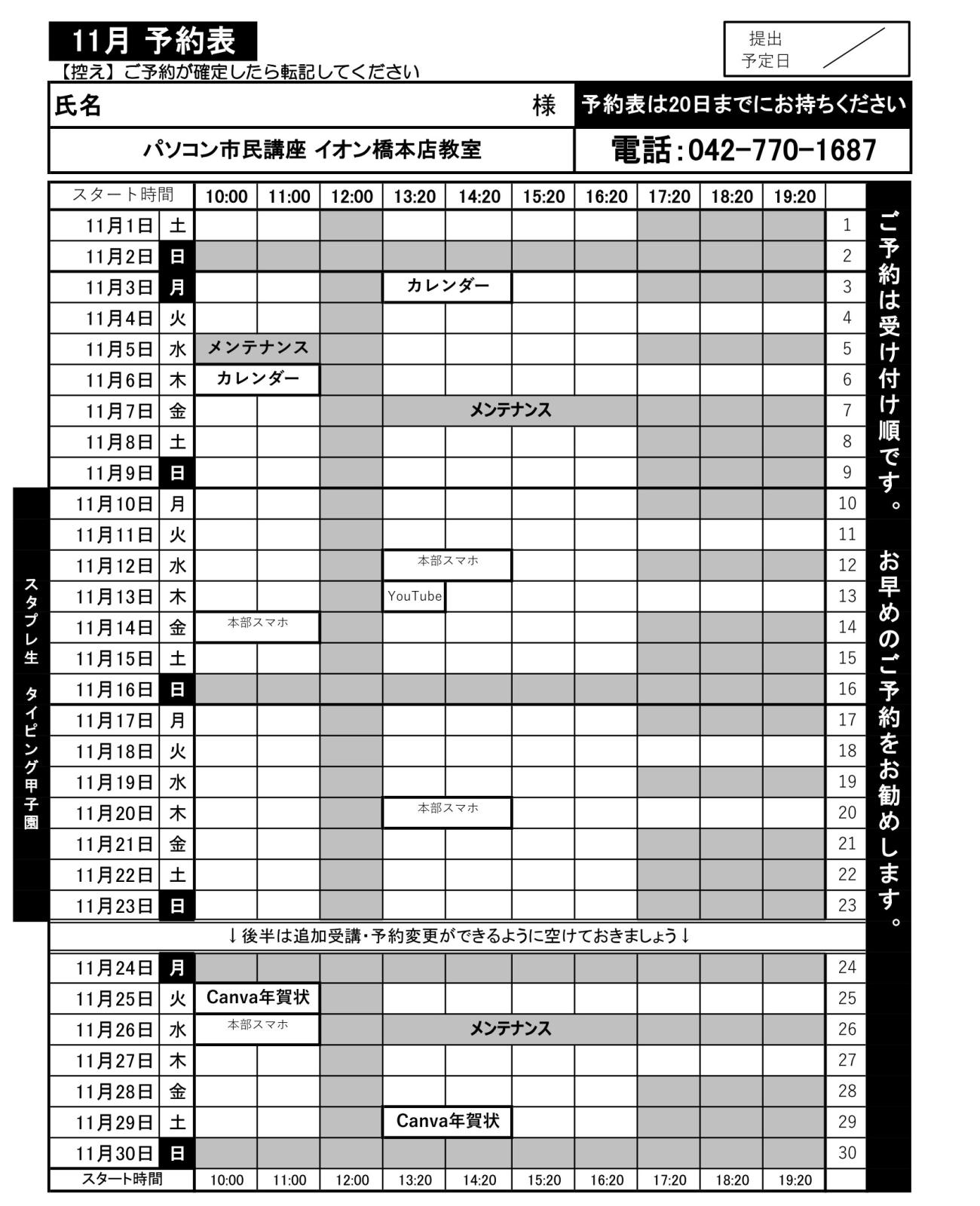 ★11月の予定★