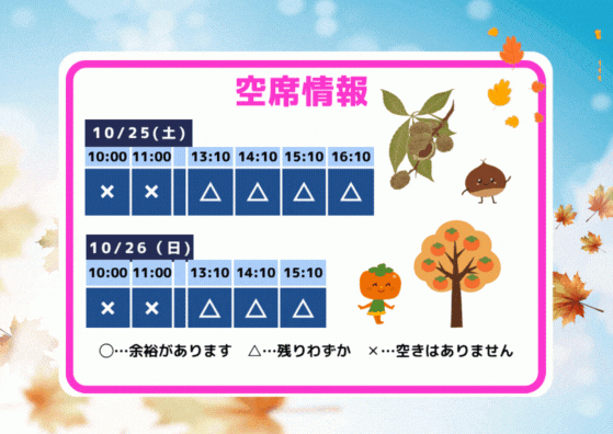 空席情報 10/25(土)10/26(日