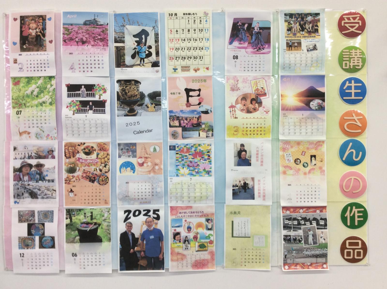 どんなカレンダーか気になる方は、教室奥の受講生さんの作品コーナーを確認してみてください。