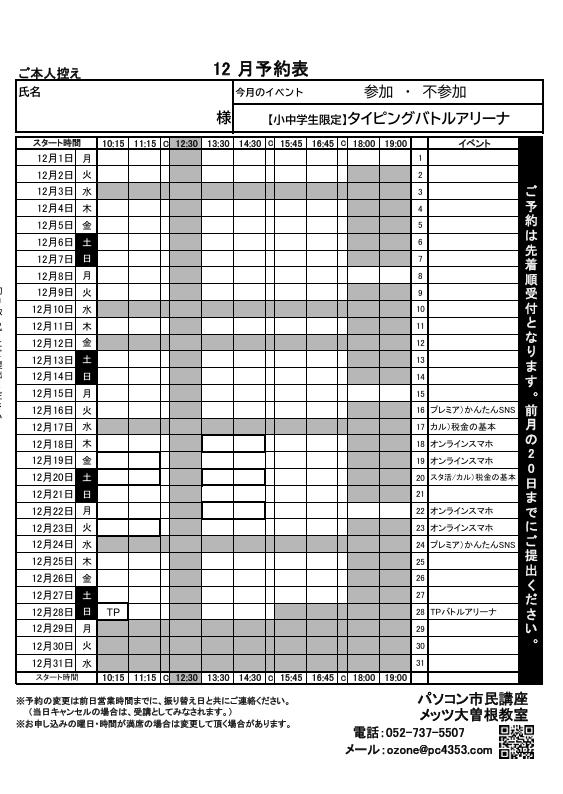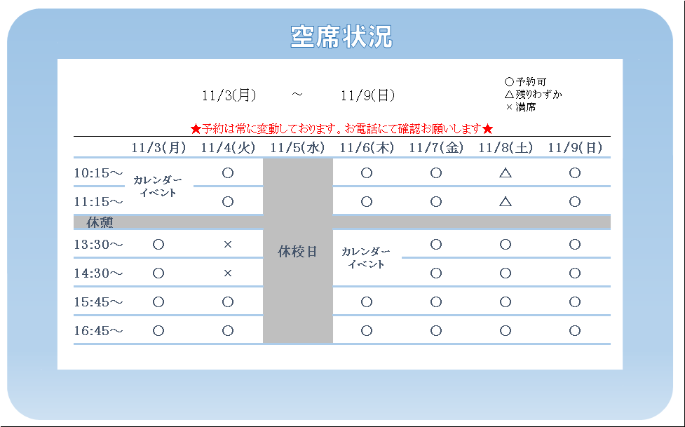 ご予約は、来校時だけでなく、お電話やFAX、メールでも受け付けております。