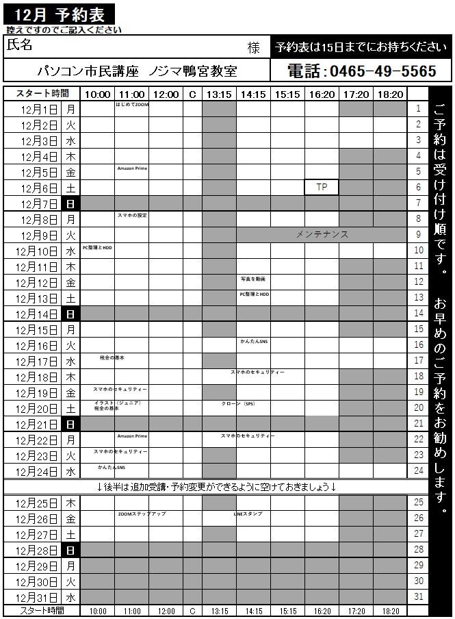 かならず15日までに予約表をご提出を頂きますようお願いします。m(_ _”m)