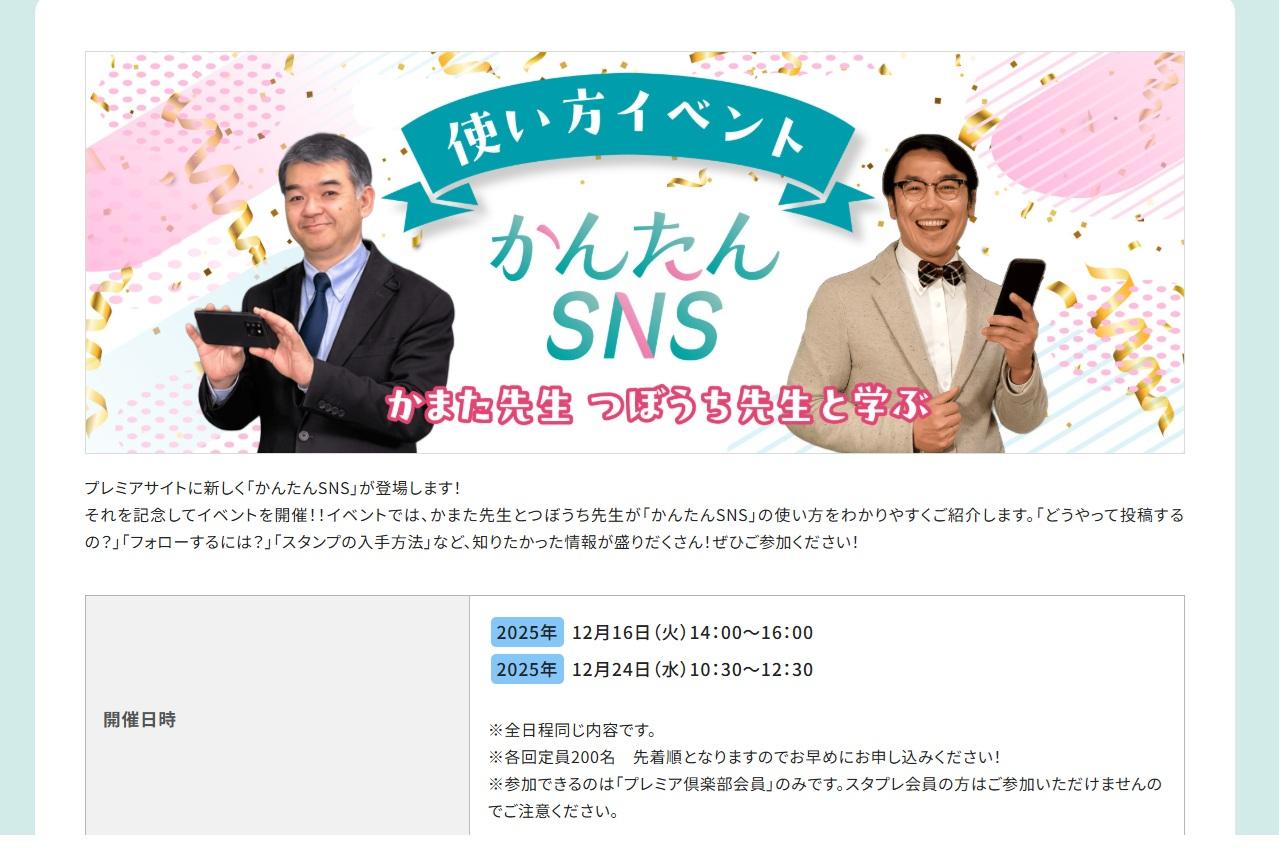12月と2月には、「かまた先生と坪内先生のかんたんSNS」イベントもあります。