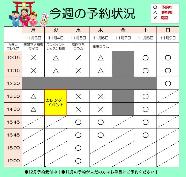 11月のご予約が未だの方はご予約をお待ちしております。