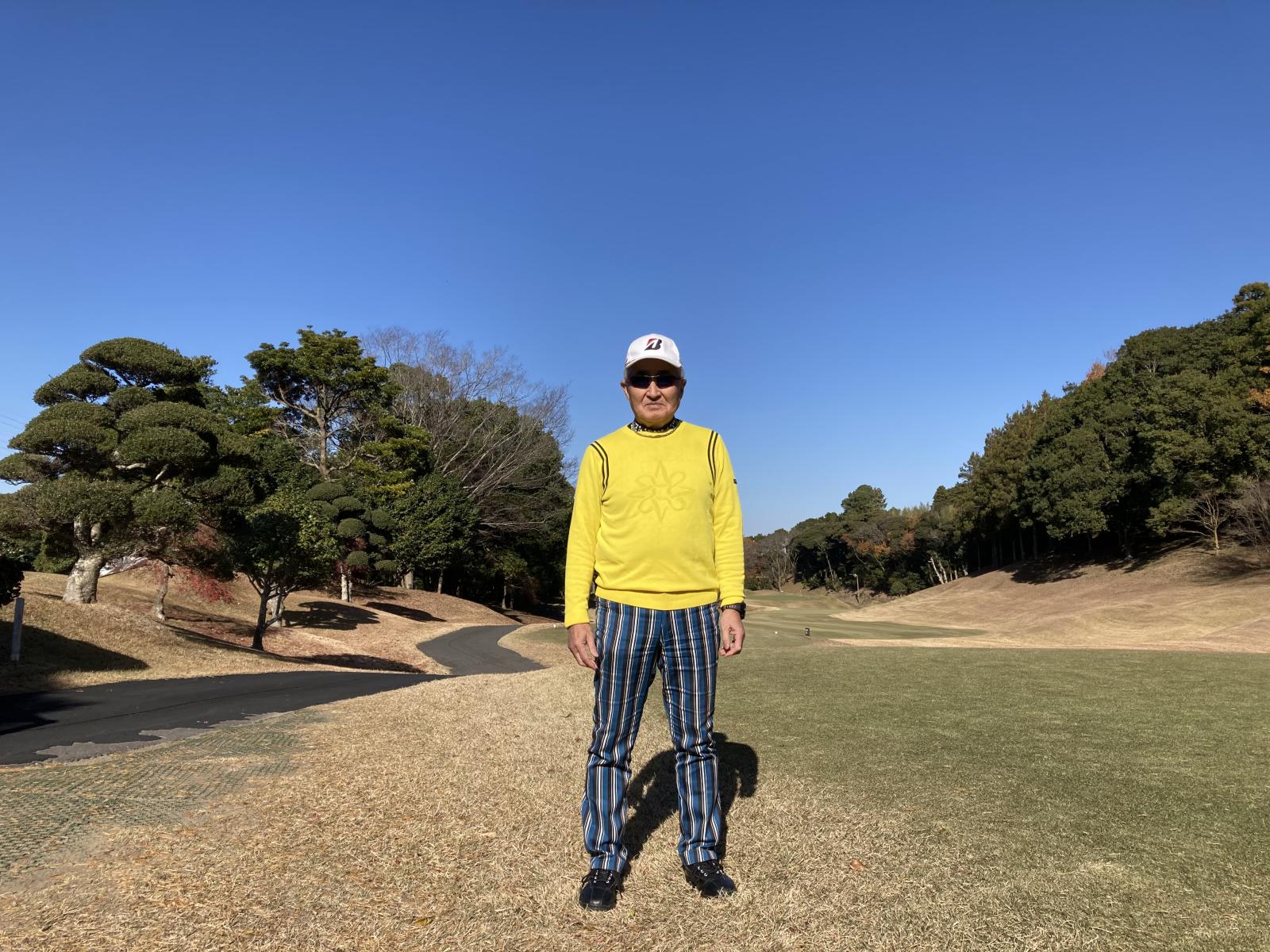 ゴルフ練習場で友人にホールインワンの祝い品を渡して