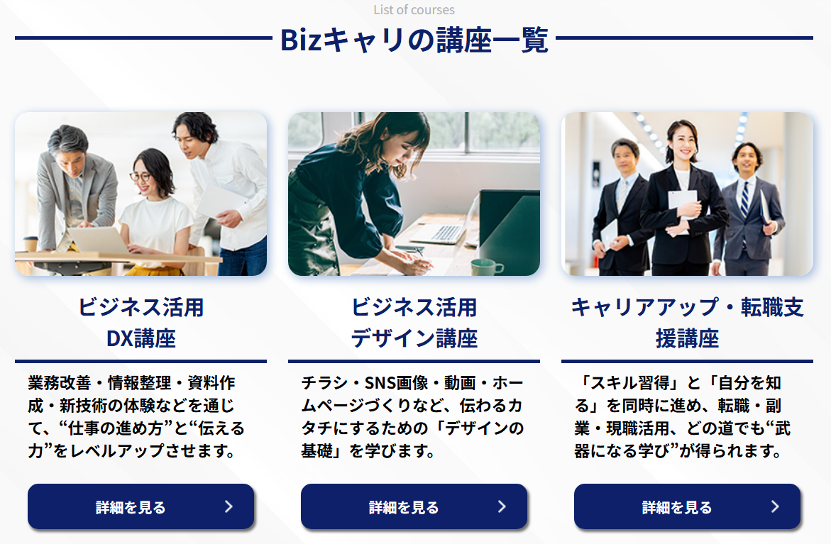 “Bizキャリ”では、これからの時代に必要なDXスキルやビジネススキルを自分のペースで身に着けられます。