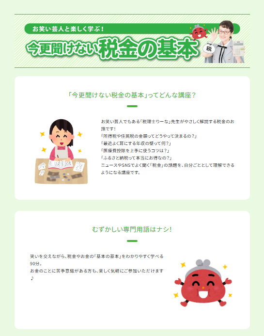 税金やお金の「基本の基本」をわかりやすく学べます。