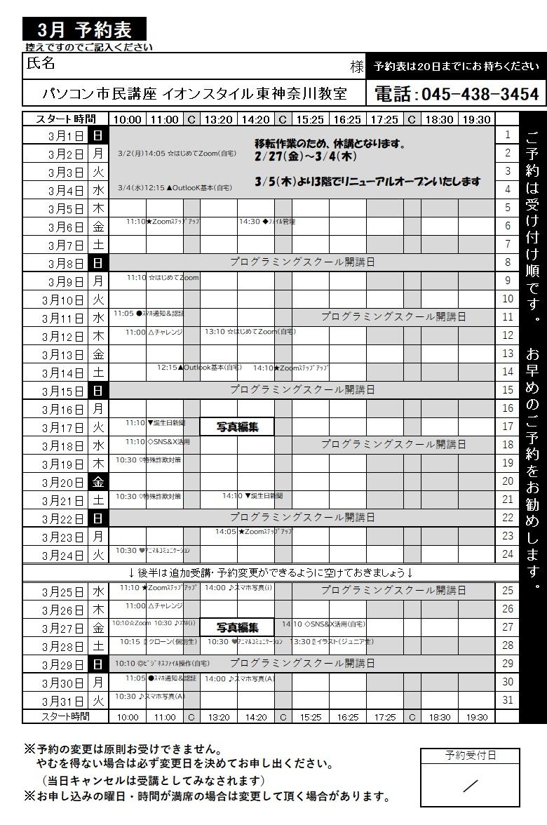 【重要】3月のスケジュールについて
