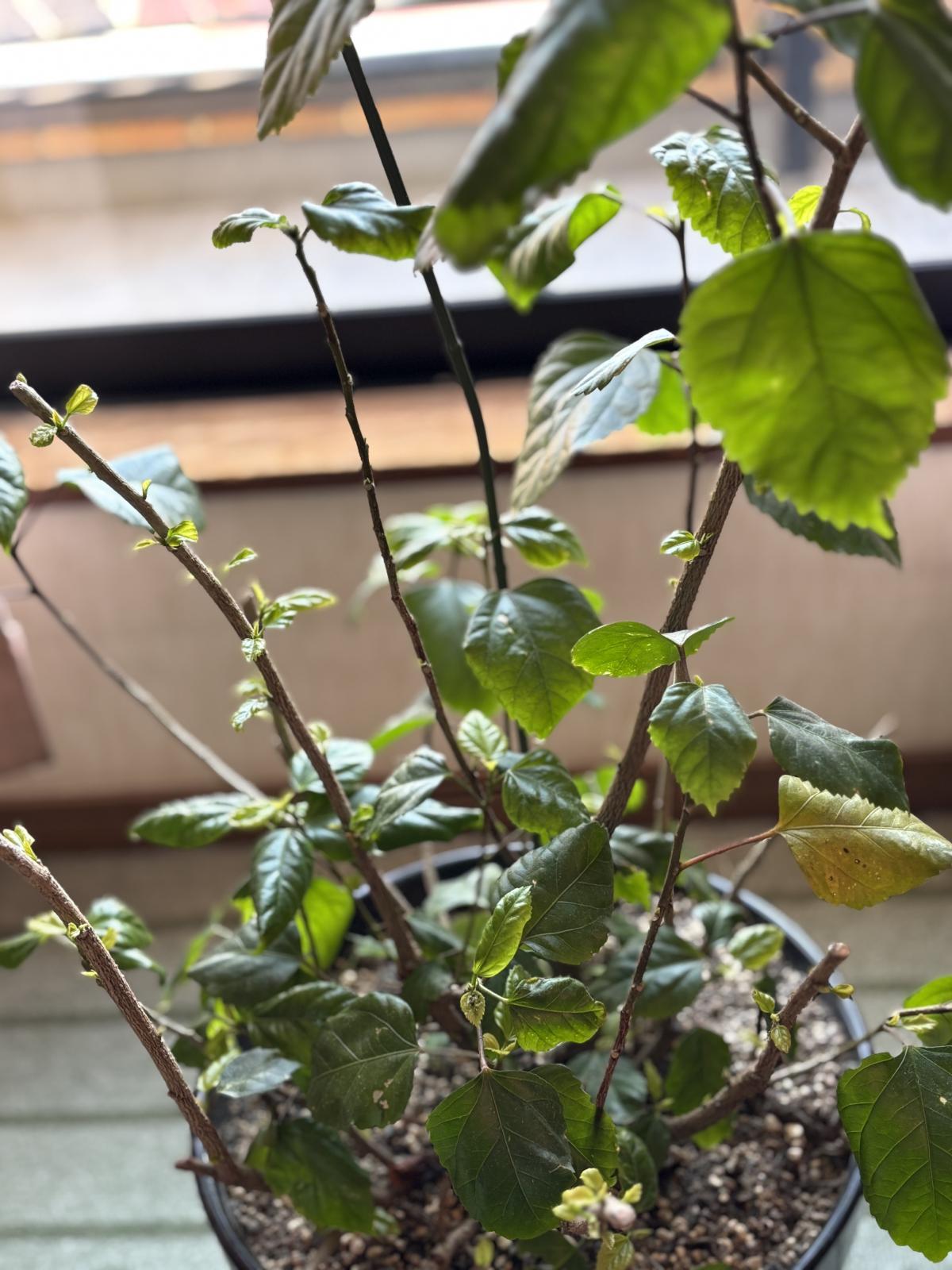 ハイビスカスは、新芽が出るか心配だったが~