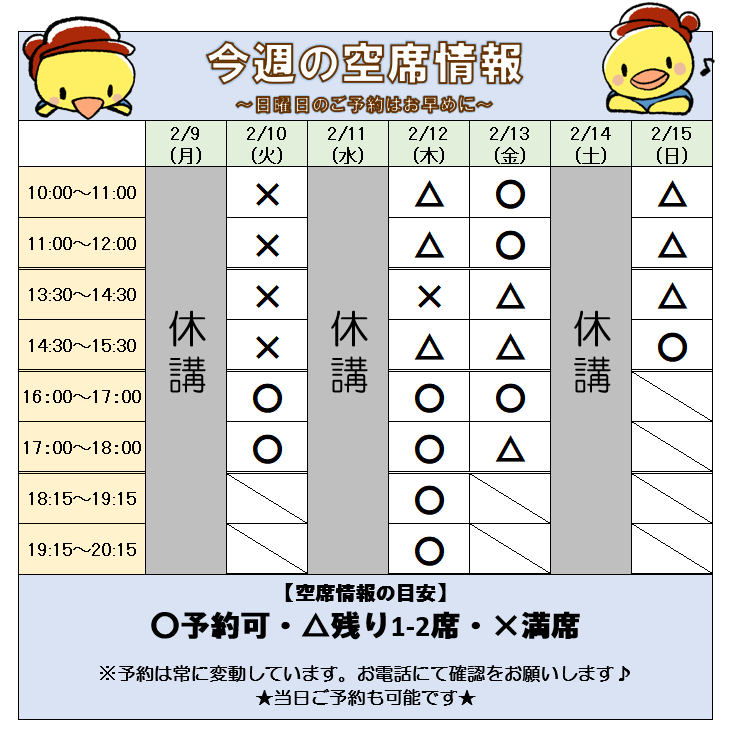 予約の変更や追加予約がありましたら、お早目に教室までご連絡くださいね♪