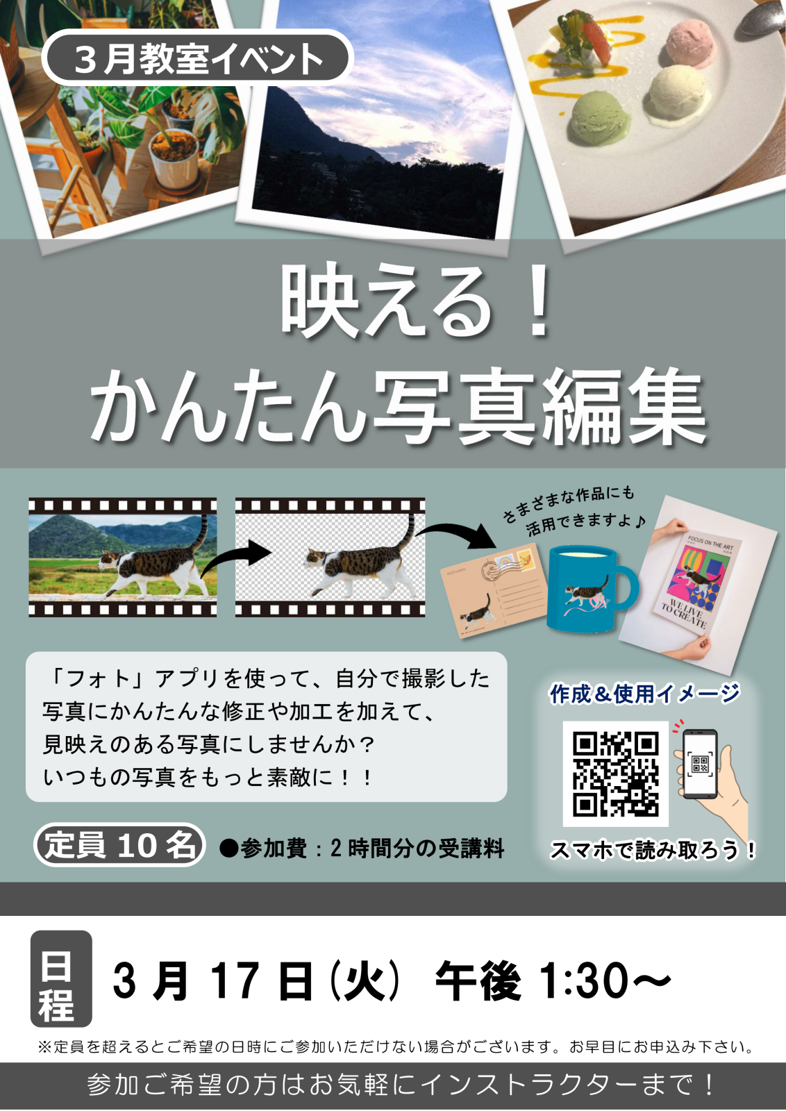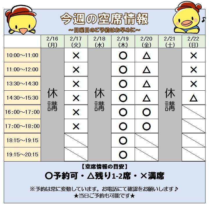 イオン北千里教室から今週の予約状況と3月イベントのご案内です。