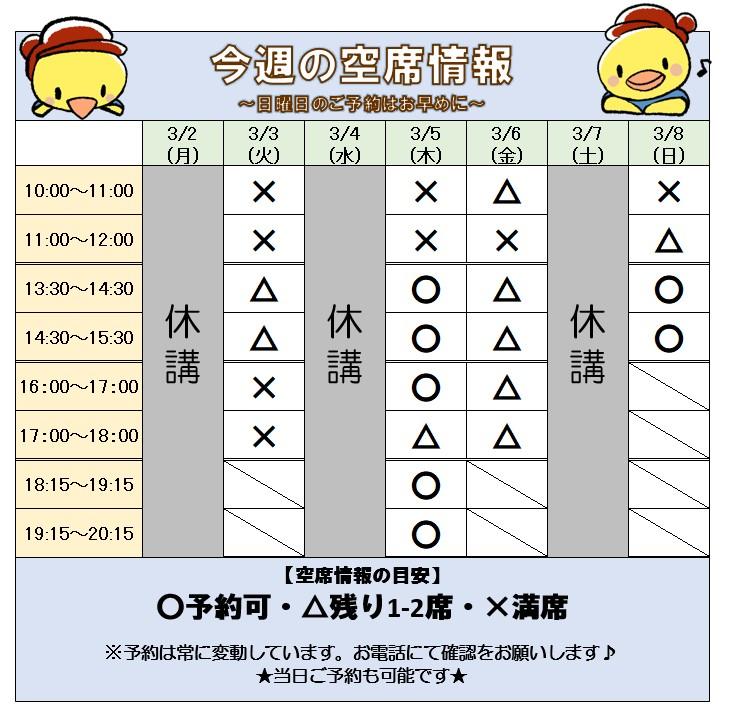 ☆空席状況と4月予約受付開始のご案内☆