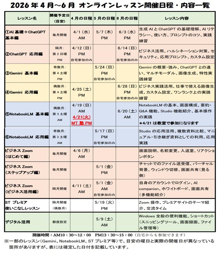 基礎編~応用編まで詳細は添付のカレンダーでご確認ください。