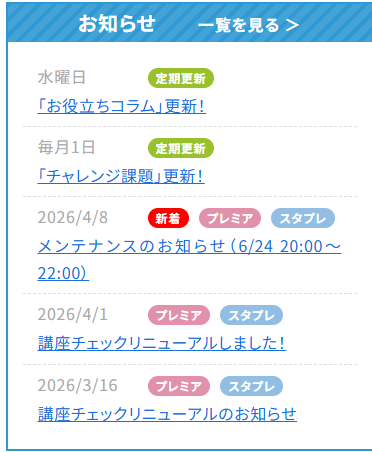 毎日ログインされている皆さんも、そうでない皆さんも今日のトップページのお知らせをご覧になりましたか?